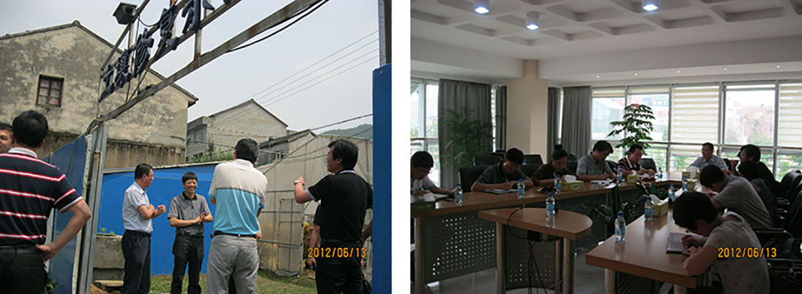2012年6月13日,省固廢中心領導、臺州市固廢中心,溫嶺市環保局等人員在公司領導陳總的陪同下,對我公司承建的溫嶺市固廢拆解污染土壤修復與控制項目(浙江省土壤修復示范點)進行了參觀、考察。