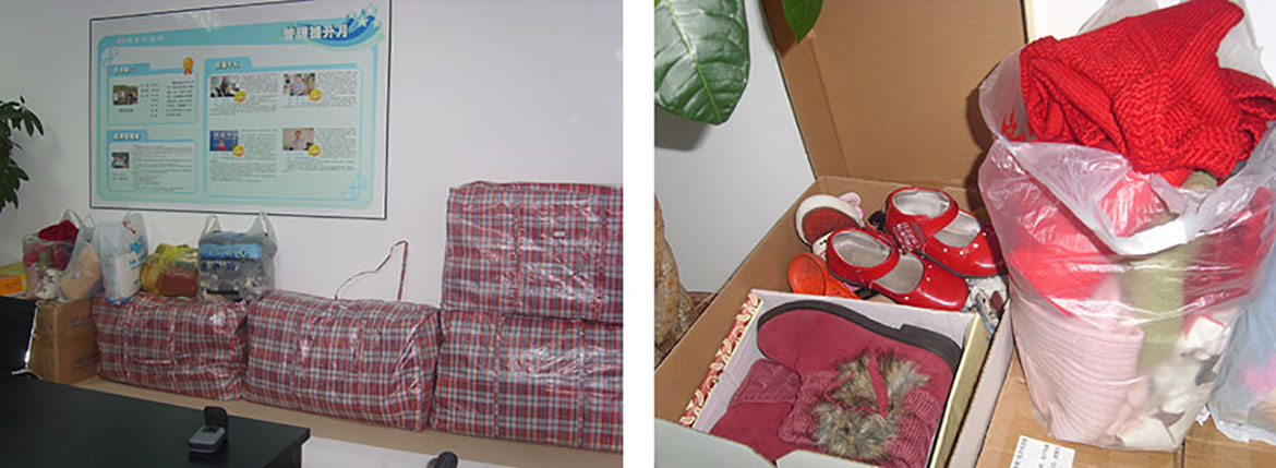 今年我們將繼續(xù)發(fā)揚愛心,由公司工會組織了“衣舊溫暖”的募捐活動。本次活動開展了近兩周的時間,此次募集到的衣服、褲子、裙子、帽子、圍巾、鞋子等共計218件。活動通知一出,咱們的員工第二天就帶了很多的棉襖大衣、棉鞋過來,看到大家的熱情和關愛,我要真心地說聲謝謝,謝謝大家伸出溫暖的雙手。我想不僅僅我的心里覺得溫暖,當那些人們收到我們寄去的這些東西時,我想他們也會感受到一絲暖意的。